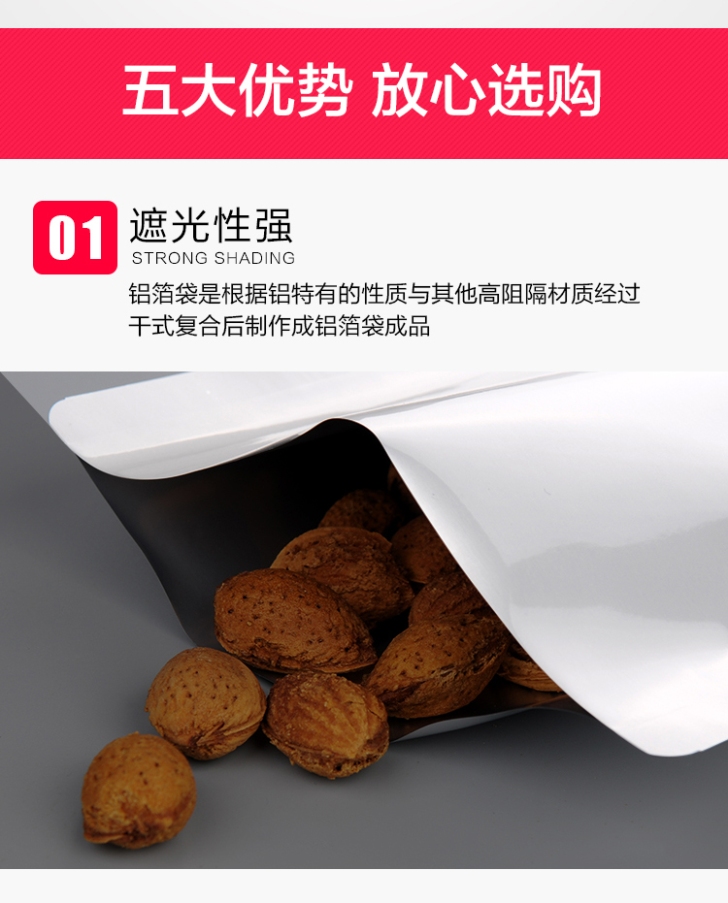 鋁箔袋一般都是復(fù)合包裝袋,其應(yīng)用十分廣泛,在生活中我們隨處可見鋁箔袋的身影,它比較適用于大型精密機(jī)械設(shè)備、食品和化學(xué)原料的包裝。